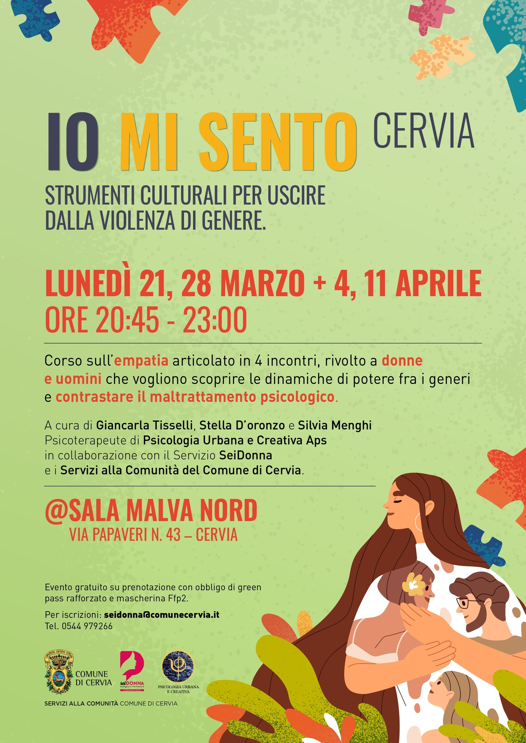 Psicoterapeute di Psicologia Urbana e Creativa Aps in collaborazione con il Servizio SeiDonna e i Servizi alla Comunità del Comune di Cervia.